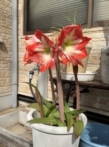 事務所入り口のアマリリスの鉢植えが、見事に満開となりました!